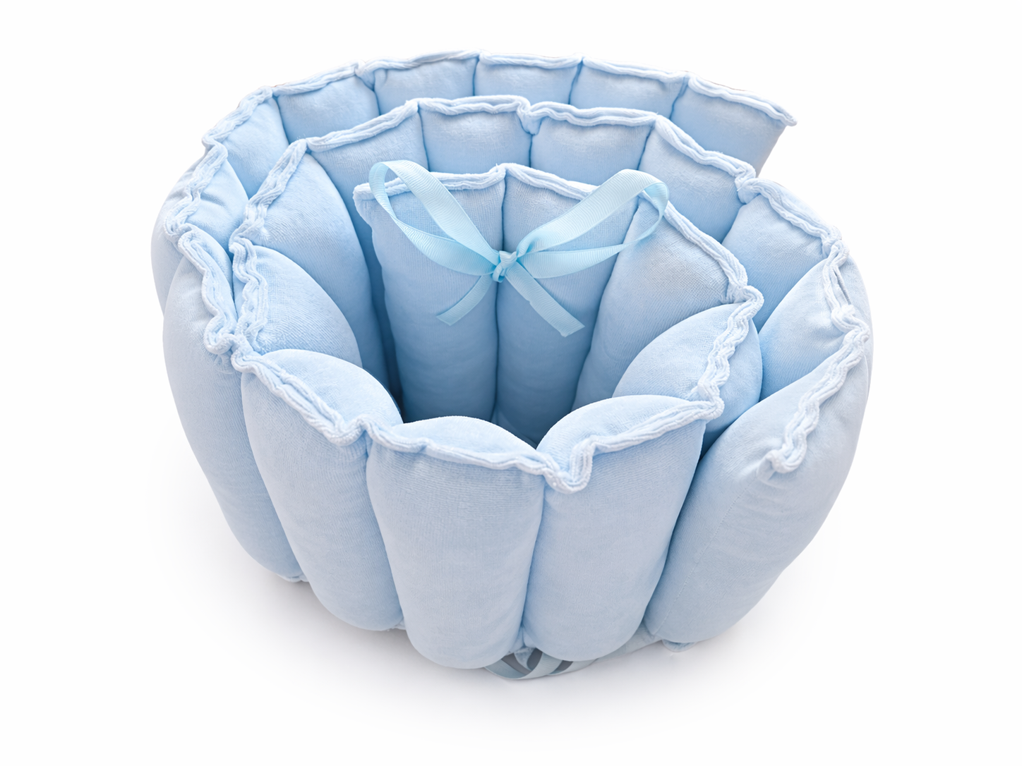 Pastelowe odcienie, takie jak prezentowany niebieski, doskonale wpisują się w klimat dziecięcej wyprawki i tworzą spokojną atmosferę sprzyjającą zasypianiu.